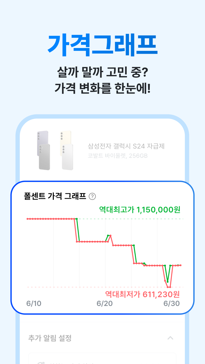 - 직관적인 가격 히스토리 그래프: 상품별 과거 가격 변동 내역을 시각적으로 명확한 그래프 형태로 제공하여, 가격 추이를 한눈에 파악하고 미래 가격 변동을 예측하는 데 도움을 줍니다.